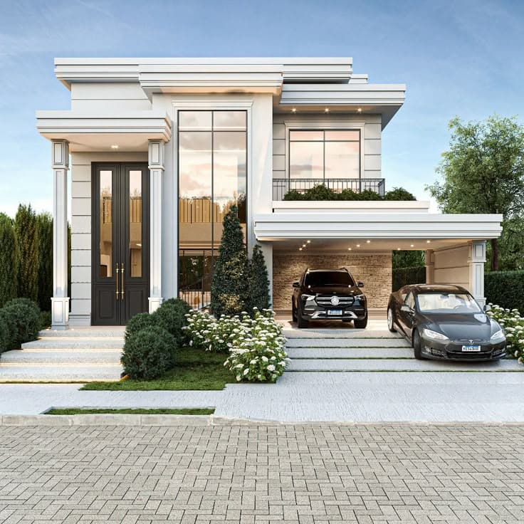 Inspirada na antiguidade greco-romana, a arquitetura neoclássica destaca-se pelo uso de colunas, frontões e elementos ornamentais. É um estilo que transmite imponência e elegância, frequentemente escolhido por quem busca um visual clássico e atemporal para sua casa de luxo.